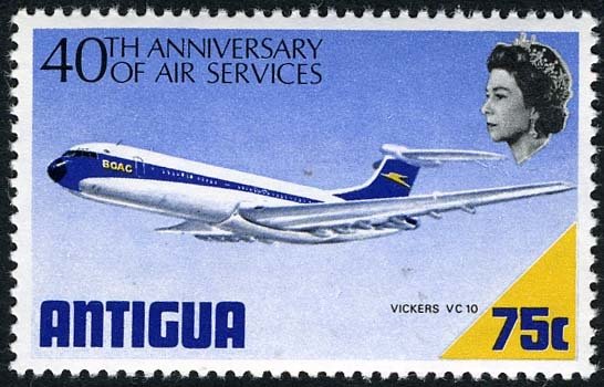 Visibility: public Image owner: none postage 2/16/1970 75c multi issue=air service 40th d=Vickers VC-10 (1970) wmk=St Edwards crown & CA perf=14.5 Crops No visible images cropped from this one. Measurements Resolution is unknown. Source Source name: Colnect File URL: http://i.colnect.net/b/2017/633/Vickers-VC-10.jpg Uploaded September 1, 2015, 7:37 pm by Stan Shebs |