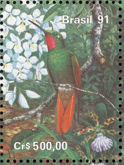 Visibility: public Image owner: none postage 10/13/1991 500.00cr multi issue=Brapex 91 d=Clytolaema rubricauda (1991) unwmk perf=12x11.5 Crops No visible images cropped from this one. Measurements Resolution is unknown. Source Source name: Colnect File URL: http://i.colnect.net/b/1976/318/Brazilian-Ruby-Clytolaema-rubricauda-Zygopetalum-intermed.jpg Uploaded September 5, 2015, 12:22 am by Stan Shebs |