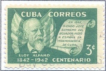 Visibility: public Image owner: none postage 9/20/1943 3c grn issue=Eloy Alfaro 100th d=Eloy Alfaro & scroll wmk=star (Cuba) perf=10 Crops No visible images cropped from this one. Measurements Resolution is unknown. Source Source name: Colnect File URL: http://i.colnect.net/b/2504/766/General-Eloy-Alfaro-flags-of-Cuba-and-Ecuador.jpg Uploaded September 14, 2015, 3:39 pm by Stan Shebs |
