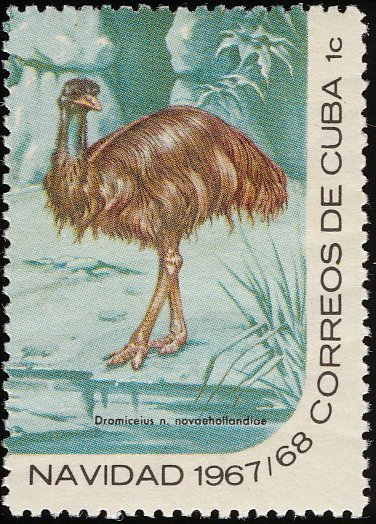 Visibility: public Image owner: none postage 12/20/1967 1c multi issue=Christmas 1967 dt=birds of Havana Zoo d=Dromaius novaehollandiae unwmk perf=12.5 Crops No visible images cropped from this one. Measurements Resolution is unknown. Source Source name: Colnect File URL: http://i.colnect.net/b/2509/015/Emu-Dromaius-novaehollandiae.jpg Uploaded September 14, 2015, 4:48 pm by Stan Shebs |