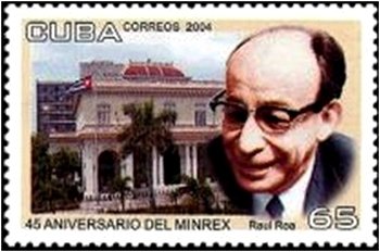 Visibility: public Image owner: none postage 12/23/2004 65c multi issue=45th Anniversary of the Ministry of Foreign Affairs d=Ministry Building and Raul Roa unwmk perf=12.75x12.5 Crops No visible images cropped from this one. Measurements Resolution is unknown. Source Source name: Colnect File URL: http://i.colnect.net/b/2500/144/Ministry-of-Foreign-Affairs.jpg Uploaded September 15, 2015, 4:33 pm by Stan Shebs |