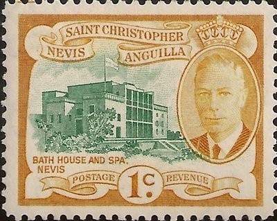 Visibility: public Image owner: none postage 6/14/1952 1c org&grn issue=1952 d=Bath House and Spa, Nevis & King George VI wmk=mult crown & script CA perf=12.5 Crops No visible images cropped from this one. Measurements Resolution is unknown. Source Source name: Colnect File URL: http://i.colnect.net/images/b/1184/573/Bath-House-and-Spa.jpg Uploaded August 23, 2014, 4:41 pm by Stan Shebs |