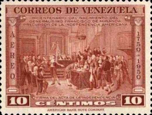 Visibility: public Image owner: none airmail 3/28/1950 10c redbrn issue=Miranda 200th unwmk perf=12 Crops No visible images cropped from this one. Measurements Resolution is unknown. Source Source name: Colnect File URL: http://i.colnect.net/b/2434/864/Signing-Act-of-Independence.jpg Uploaded September 25, 2015, 2:46 pm by Stan Shebs |