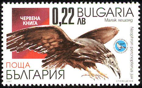 Visibility: public Image owner: none postage 5/24/2001 0.22l multi issue=Bulgarian Red Book of Endangered Animals and Plants Species - Egyptian Vulture d=Neophron percnopterus (2001) unwmk perf=13 Crops No visible images cropped from this one. Measurements Resolution is unknown. Source Source name: Colnect File URL: http://i.colnect.net/b/1976/654/Egyptian-Vulture-Neophron-percnopterus.jpg Uploaded September 28, 2015, 6:33 pm by Stan Shebs |