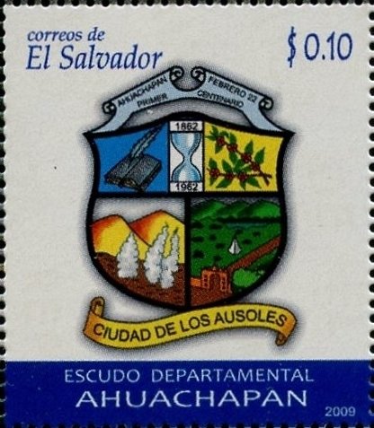 Visibility: public Image owner: none postage 7/22/2009 $0.10 multi issue=National Bird & Coat of Arms d=arms of Ahuachapan unwmk Crops No visible images cropped from this one. Measurements Resolution is unknown. Source Source name: Colnect File URL: http://i.colnect.net/b/2682/321/Ahuachapan.jpg Uploaded September 29, 2015, 6:55 pm by Stan Shebs |