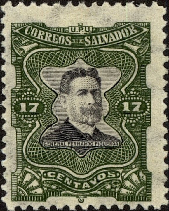 Visibility: public Image owner: none official 10/1/1910 17c olgrn&blk issue=1910 official d=General Fernando Figueroa wmk=honeycomb (El Salvador) Crops No visible images cropped from this one. Measurements Resolution is unknown. Source Source name: Colnect File URL: http://i.colnect.net/b/2805/780/General-Fernando-Figueroa-1849-1919.jpg Uploaded September 29, 2015, 7:29 pm by Stan Shebs |