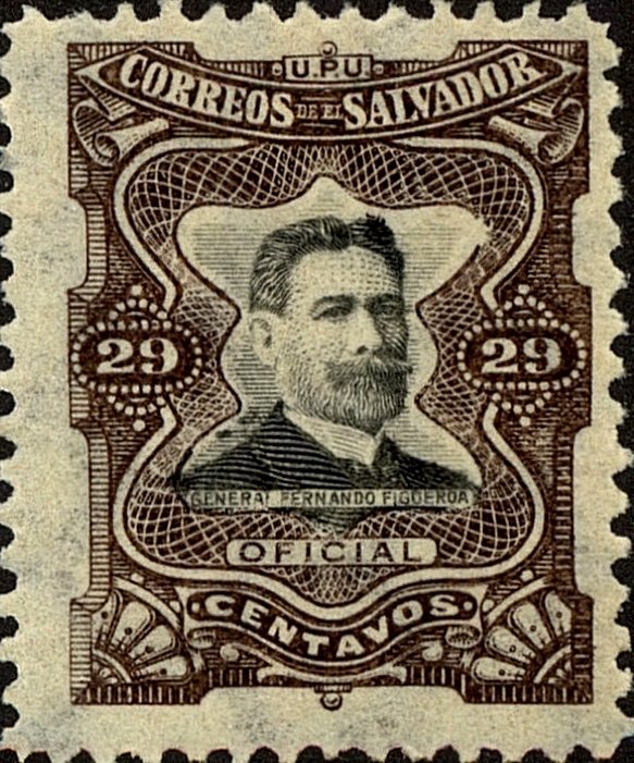 Visibility: public Image owner: none official 10/1/1910 29c purbrn&blk issue=1910 official d=General Fernando Figueroa wmk=honeycomb (El Salvador) Crops No visible images cropped from this one. Measurements Resolution is unknown. Source Source name: Colnect File URL: http://i.colnect.net/b/2805/803/General-Fernando-Figueroa-1849-1919-OFICIAL.jpg Uploaded September 29, 2015, 7:29 pm by Stan Shebs |