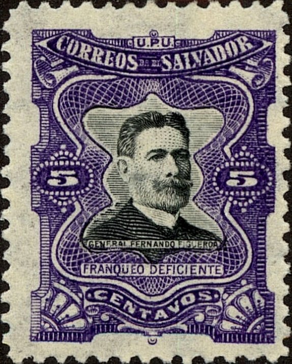 Visibility: public Image owner: none postage due 10/1/1910 5c vio&blk issue=1910 due d=General Fernando Figueroa wmk=honeycomb (El Salvador) Crops No visible images cropped from this one. Measurements Resolution is unknown. Source Source name: Colnect File URL: http://i.colnect.net/b/2805/787/General-Fernando-Figueroa-1849-1919-FRANQUEO-DEFICIENTE.jpg Uploaded September 29, 2015, 7:29 pm by Stan Shebs |