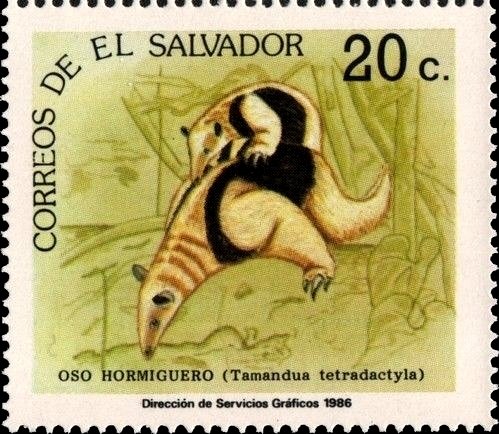 Visibility: public Image owner: none postage 5/30/1986 20c multi dt=Mammals (1986 El Salvador) d=Tamandua tetradactyla (1986) unwmk Crops No visible images cropped from this one. Measurements Resolution is unknown. Source Source name: Colnect File URL: http://i.colnect.net/b/2680/239/Southern-tamandua-Tamandua-tetradactyla.jpg Uploaded September 29, 2015, 7:37 pm by Stan Shebs |