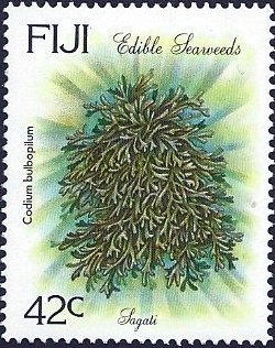 Visibility: public Image owner: none postage 6/6/1994 42c multi dt=Edible Seaweeds d=Codium bulbopilum wmk=mult crown & script CA Crops No visible images cropped from this one. Measurements Resolution is unknown. Source Source name: Colnect File URL: http://i.colnect.net/b/2828/078/Codium-bulbopilum.jpg Uploaded September 29, 2015, 8:28 pm by Stan Shebs |