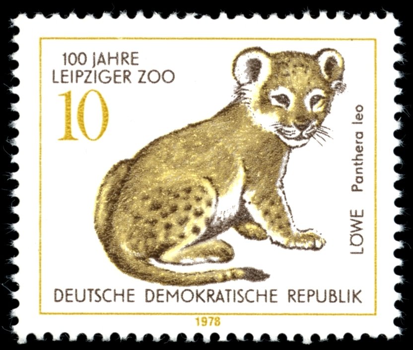 Visibility: public Image owner: none postage 5/23/1978 10pf multi issue=100 Years Leipzig Zoo dt=young cats d=lion cub unwmk Crops No visible images cropped from this one. Measurements Resolution is unknown. Source Source name: Colnect File URL: http://i.colnect.net/b/1980/253/Lion-Panthera-leo.jpg Uploaded October 4, 2015, 9:37 pm by Stan Shebs |