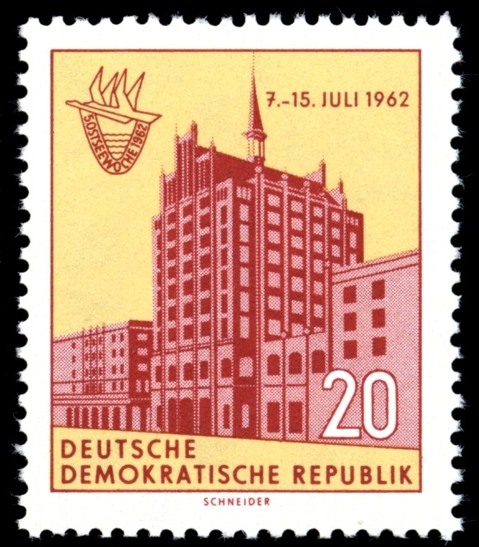 Visibility: public Image owner: none postage 7/2/1962 20pf brnred&yel issue=5th Baltic Sea Week d=hotel Crops No visible images cropped from this one. Measurements Resolution is unknown. Source Source name: Colnect File URL: http://i.colnect.net/b/1973/636/Hochhaus-in-Rostock.jpg Uploaded October 5, 2015, 12:08 am by Stan Shebs |