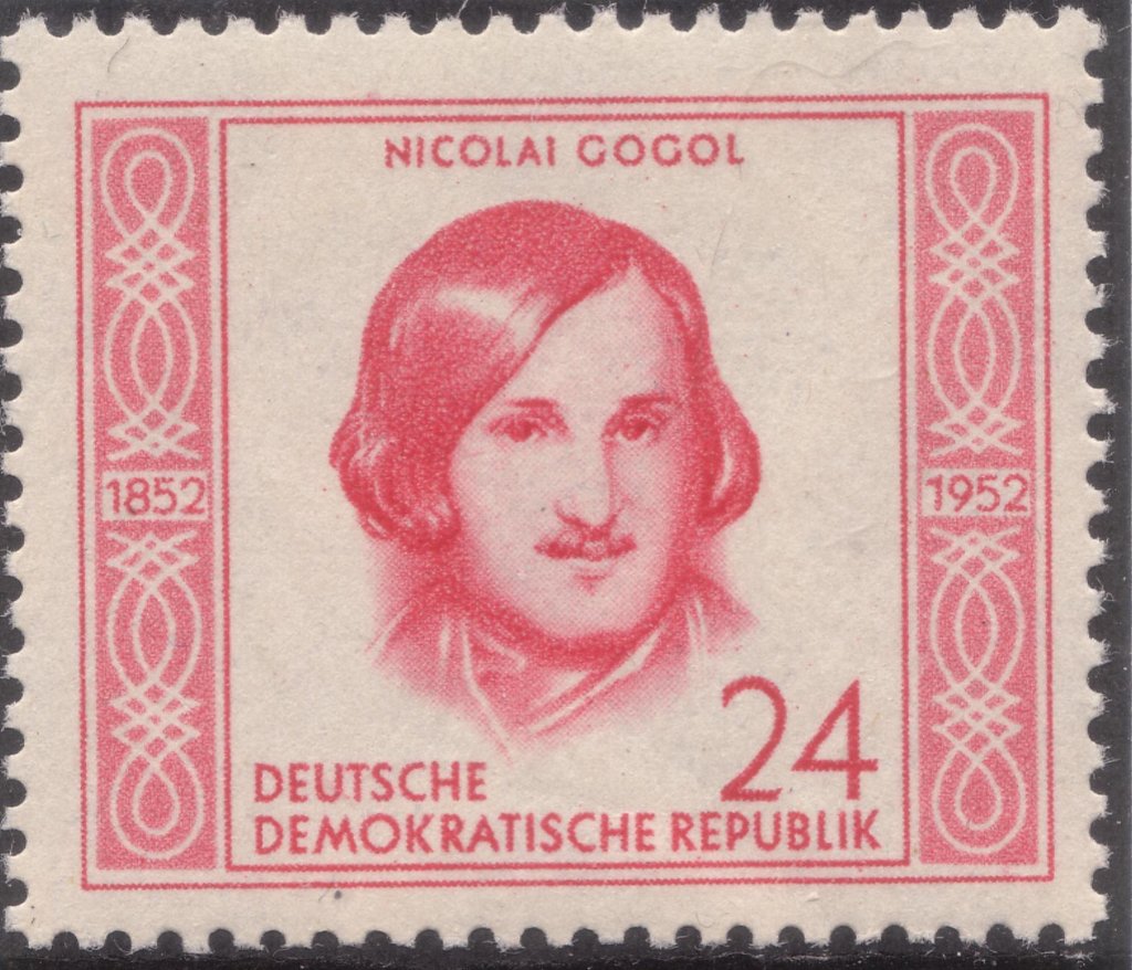 Visibility: public Image owner: none postage 8/11/1952 24pf carrose dt=famous people (1952 German Democratic Republic) d=Nicolai Gogol (1952) wmk=DDR & posthorn Crops No visible images cropped from this one. Measurements Resolution is unknown. Source Source name: Colnect File URL: http://i.colnect.net/images/b/1976/092/Gogol-Nikolaj.jpg Uploaded October 5, 2015, 12:44 am by Stan Shebs |