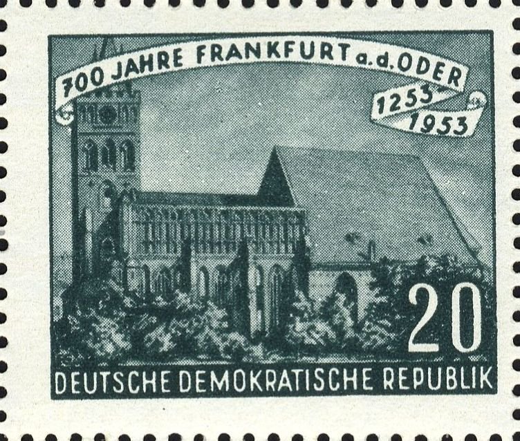 Visibility: public Image owner: none postage 7/7/1953 20pf blgrn issue=Frankfort am Oder 700th d=Marienkirche (Frankfurt a.d. Oder) Crops No visible images cropped from this one. Measurements Resolution is unknown. Source Source name: Colnect File URL: http://i.colnect.net/images/b/1976/112/Marienkirche.jpg Uploaded October 5, 2015, 12:49 am by Stan Shebs |