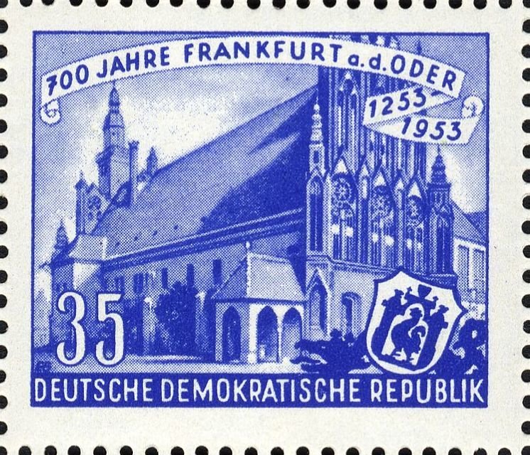 Visibility: public Image owner: none postage 7/7/1953 35pf ultra issue=Frankfort am Oder 700th d=town hall (Frankfurt a.d. Oder) Crops No visible images cropped from this one. Measurements Resolution is unknown. Source Source name: Colnect File URL: http://i.colnect.net/images/b/1976/114/Town-Hall.jpg Uploaded October 5, 2015, 12:49 am by Stan Shebs |