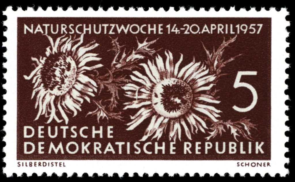 Visibility: public Image owner: none postage 4/12/1957 5pf dpbrn issue=Nature Conservation Week d=silver thistle Crops No visible images cropped from this one. Measurements Resolution is unknown. Source Source name: Colnect File URL: http://i.colnect.net/images/b/1969/958/Carlina-acaulis.jpg Uploaded October 5, 2015, 1:01 am by Stan Shebs |