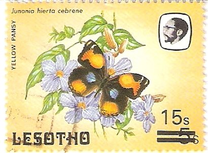 Visibility: public Image owner: none postage 8/14/1987 15s issue=1987 surcharges a oc=blk on=5s Crops No visible images cropped from this one. Measurements Resolution is unknown. Source Source name: Colnect File URL: http://i.colnect.net/b/2865/419/Yellow-Pansy-Junonia-hierta.jpg Uploaded October 5, 2015, 4:51 pm by Stan Shebs |