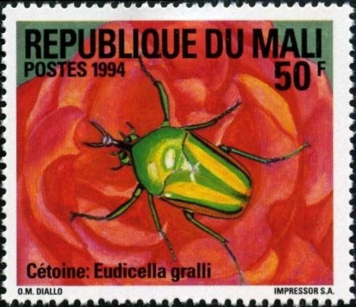 Visibility: public Image owner: none postage 3/30/1994 50fr multi dt=insects (1994 Mali) d=Eudicella gralli unwmk perf=13.25 Crops No visible images cropped from this one. Measurements Resolution is unknown. Source Source name: Colnect File URL: http://i.colnect.net/b/2593/178/Flamboyant-Flower-Beetle-Eudicella-gralli.jpg Uploaded October 5, 2015, 6:43 pm by Stan Shebs |