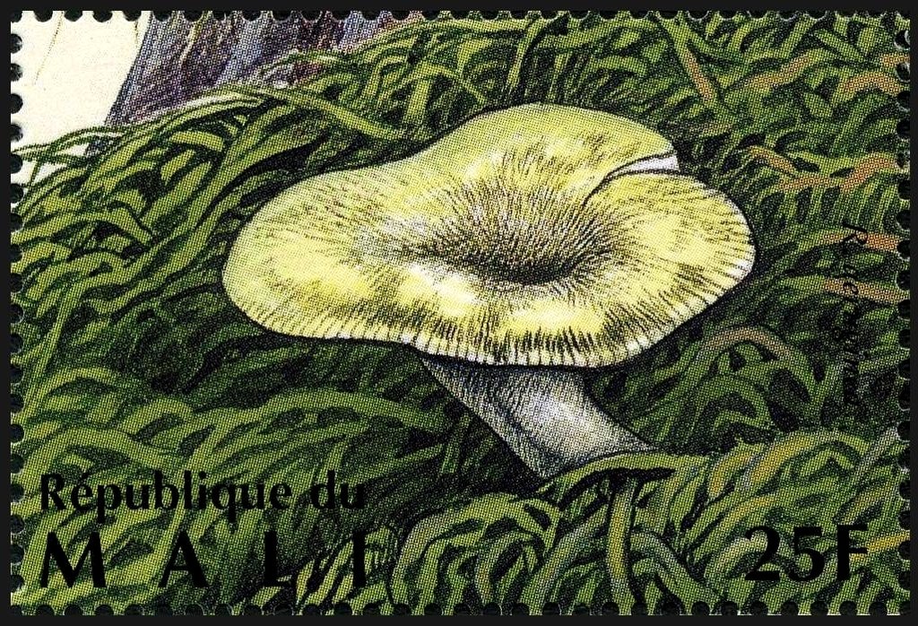 Visibility: public Image owner: none postage 3/15/1996 25fr multi dt=Fungi (1996 Mali) d=Russula aeruginea unwmk Crops No visible images cropped from this one. Measurements Resolution is unknown. Source Source name: Colnect File URL: http://i.colnect.net/b/2606/992/Grass-Green-Russula-Russula-aeruginea.jpg Uploaded October 5, 2015, 7:12 pm by Stan Shebs |