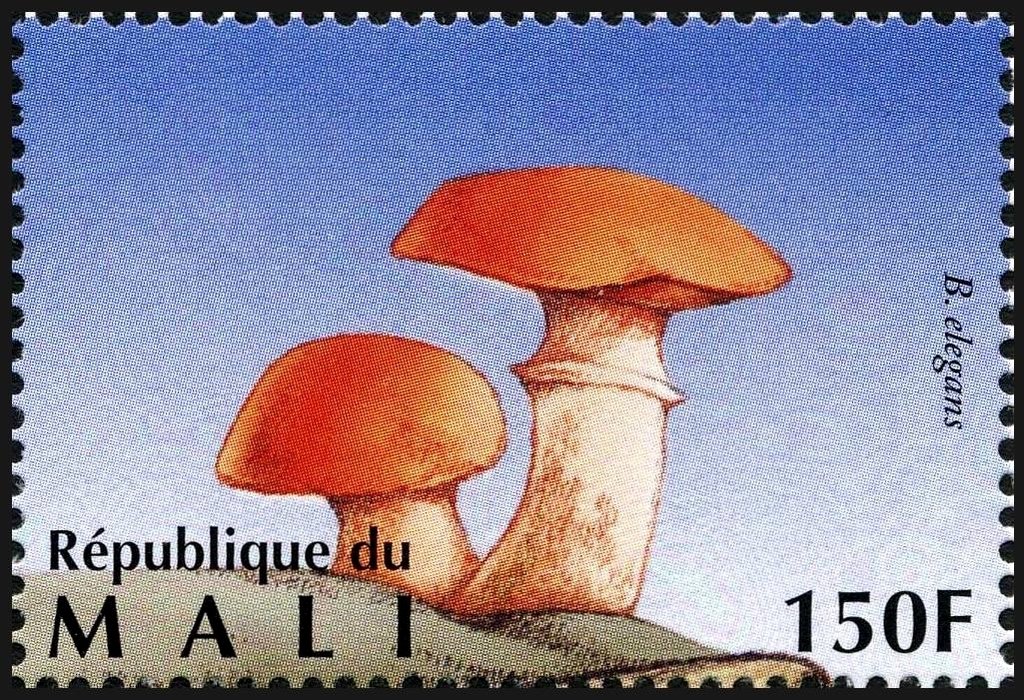 Visibility: public Image owner: none postage 3/15/1996 150fr multi dt=Fungi (1996 Mali) d=Boletus elegans unwmk Crops No visible images cropped from this one. Measurements Resolution is unknown. Source Source name: Colnect File URL: http://i.colnect.net/b/2606/995/Larch-Bolete-Boletus-elegans.jpg Uploaded October 5, 2015, 7:12 pm by Stan Shebs |