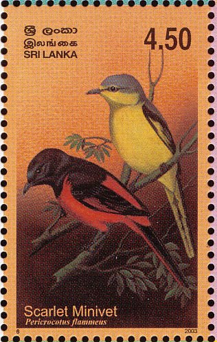 Visibility: public Image owner: none postage 9/27/2003 4.50(r) multi issue=Resident Birds of Sri Lanka dt=Resident birds of Sri Lanka d=scarlet minivet Pericrocotus flammeus unwmk Crops No visible images cropped from this one. Measurements Resolution is unknown. Source Source name: Colnect File URL: http://i.colnect.net/b/2543/477/Scarlet-Minivet-Pericrocotus-flammeus-.jpg Uploaded October 12, 2015, 7:44 pm by Stan Shebs |