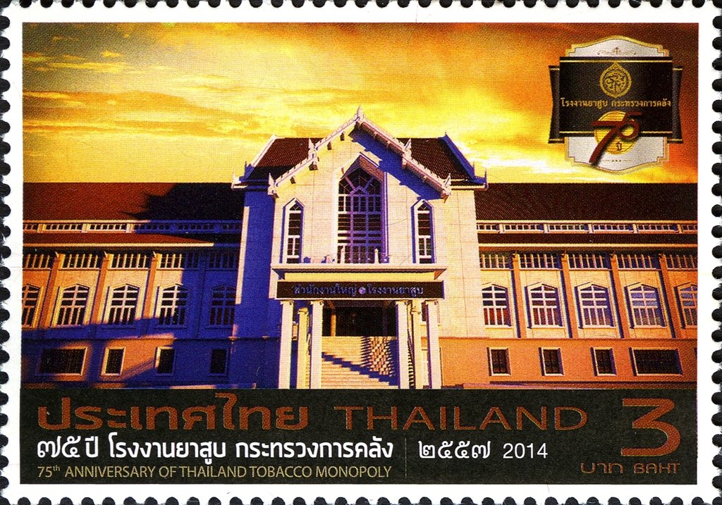 Visibility: public Image owner: none postage 4/19/2014 3b multi issue=75th Anniversary of Thailand Tobacco Monopoly unwmk Crops No visible images cropped from this one. Measurements Resolution is unknown. Source Source name: Colnect File URL: http://i.colnect.net/b/2569/742/75th-Anniversary-of-Thailand-Tobacco-Monopoly.jpg Uploaded October 13, 2015, 2:43 pm by Stan Shebs |