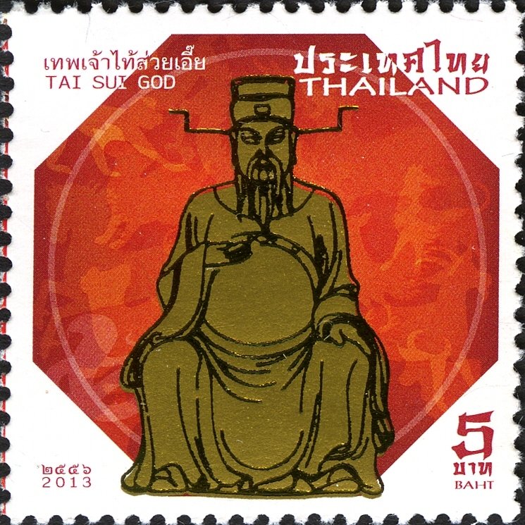 Visibility: public Image owner: none postage 2/7/2013 5b multi issue=Tai Sui God d=Tai Sui God unwmk Crops No visible images cropped from this one. Measurements Resolution is unknown. Source Source name: Colnect File URL: http://i.colnect.net/b/2569/762/Tai-Sui-God.jpg Uploaded October 13, 2015, 2:53 pm by Stan Shebs |