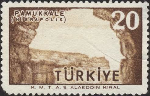 Visibility: public Image owner: none postage 5/18/1958 20k brn d=Pamukkale ruins unwmk perf=12.75 Crops No visible images cropped from this one. Measurements Resolution is unknown. Source Source name: Colnect File URL: http://i.colnect.net/images/b/2399/485/Pamukkale.jpg Uploaded October 13, 2015, 6:07 pm by Stan Shebs |