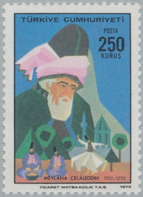 Visibility: public Image owner: none postage 12/1/1973 250k multi issue=700th Anniversary of the Death of Mevlana Celaleddin unwmk perf=13x12.75 Crops No visible images cropped from this one. Measurements Resolution is unknown. Source Source name: Colnect File URL: http://i.colnect.net/b/2579/356/Mevlana.jpg Uploaded October 13, 2015, 7:23 pm by Stan Shebs |