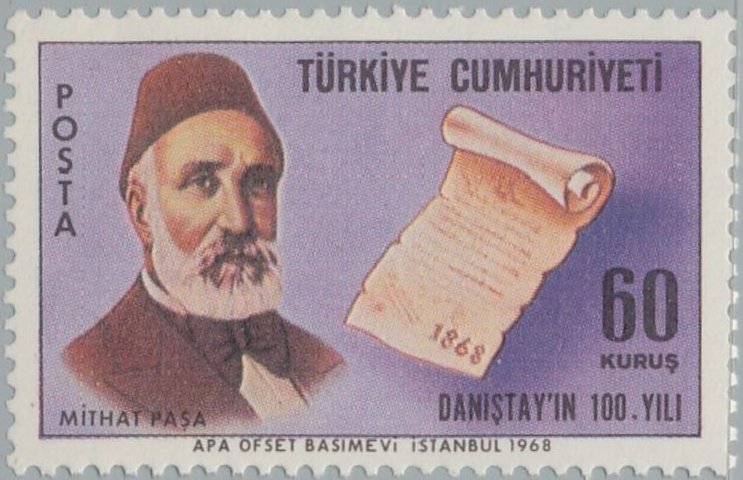 Visibility: public Image owner: none postage 4/1/1968 60k multi issue=100th Anniversary of the Turkish Courts d=Mithat Pasha unwmk perf=13 Crops No visible images cropped from this one. Measurements Resolution is unknown. Source Source name: Colnect File URL: http://i.colnect.net/b/2578/673/State-council.jpg Uploaded October 13, 2015, 7:32 pm by Stan Shebs |