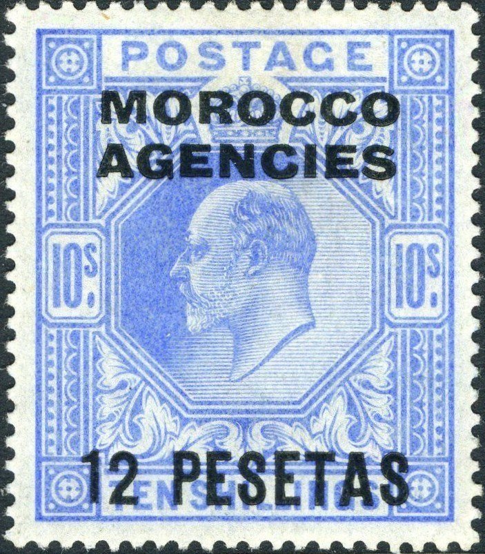 Visibility: public Image owner: none postage 12p ultra issue=1907 d=King Edward VII (1902 10sh) ovpt=Morocco//Agencies oc=blk on=issuer=Great Britain-1902-10sh-ultra wmk=imperial crown perf=14 Crops No visible images cropped from this one. Measurements Resolution is unknown. Source Source name: Colnect File URL: http://i.colnect.net/b/2497/864/King-Edward-VII.jpg Uploaded October 19, 2015, 4:24 pm by Stan Shebs |