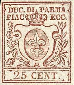 Type: stamp Issuer: Parma Date: 1857 Denom: ?