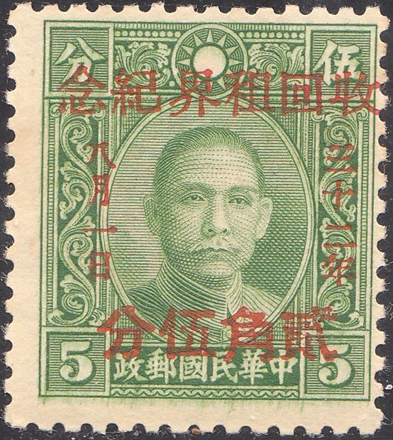 Visibility: public Image owner: none postage 8/1/1943 25c grn issue=return of foreign concessions d=++on=5c unwmk Crops No visible images cropped from this one. Measurements Resolution is unknown. Source Source name: Colnect File URL: http://i.colnect.net/b/1559/511/Sun-Yat-sen-and-Overprint.jpg Uploaded October 22, 2015, 3:16 am by Stan Shebs |