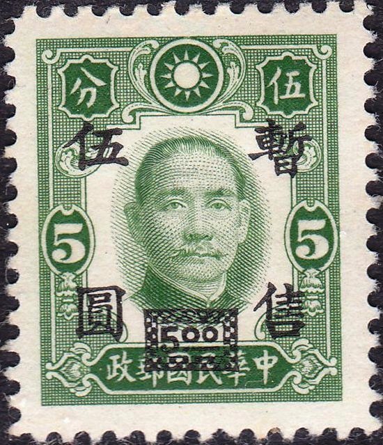 Visibility: public Image owner: none postage 1942 grn issue=1942g d=Sun Yatsen (1941) on=issuer=China-issue=1941-5c unwmk perf=12 Crops No visible images cropped from this one. Measurements Resolution is unknown. Source Source name: Colnect File URL: http://i.colnect.net/b/1576/988/Sun-Yat-sen-surcharged.jpg Uploaded October 22, 2015, 3:17 am by Stan Shebs |