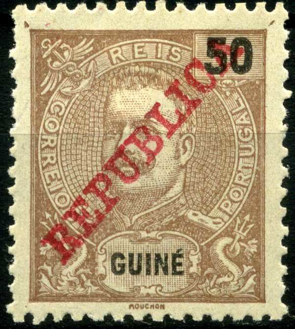 Visibility: public Image owner: none postage 50r brn issue=1911 Republica d=King Carlos (1898) ovpt=REPUBLICA(serifs) oc=blk on=50r-brn unwmk Crops No visible images cropped from this one. Measurements Resolution is unknown. Source Source name: Colnect File URL: http://i.colnect.net/b/1765/725/King-Carlos-I---REPUBLICA.jpg Uploaded October 22, 2015, 3:36 am by Stan Shebs |