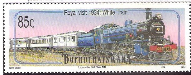 Visibility: public Image owner: none postage 6/18/1993 85c multi dt=steam locomotives (1993) d=Class 16B Locomotive unwmk Crops No visible images cropped from this one. Measurements Resolution is unknown. Source Source name: Colnect File URL: http://i.colnect.net/b/2787/983/Locomotives-1934-Royal-visit-White-train-SAR-class-16B.jpg Uploaded October 22, 2015, 4:32 am by Stan Shebs |