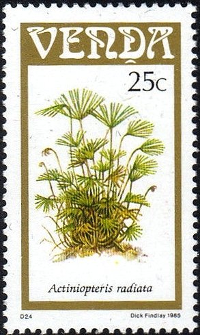 Visibility: public Image owner: none postage 9/5/1985 25c multi issue=Ferns 1985 d=Actiniopteris radiata (1985) unwmk Crops No visible images cropped from this one. Measurements Resolution is unknown. Source Source name: Colnect File URL: http://i.colnect.net/b/2840/104/Ferns-Actiniopteris-radiata.jpg Uploaded October 22, 2015, 12:54 pm by Stan Shebs |