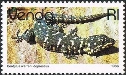 Visibility: public Image owner: none postage 1/16/1986 1r multi issue=1986 dt=reptiles (1986 Venda) d=Cordylus warreni depressus unwmk Crops No visible images cropped from this one. Measurements Resolution is unknown. Source Source name: Colnect File URL: http://i.colnect.net/b/2840/070/Zoutpansberg-Girdled-Lizard-Cordylus-warreni-depressus.jpg Uploaded October 22, 2015, 12:55 pm by Stan Shebs |