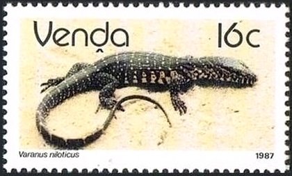Visibility: public Image owner: none postage 4/1/1987 16c multi issue=1986 dt=reptiles (1986 Venda) d=Varanus niloticus (1987) unwmk Crops No visible images cropped from this one. Measurements Resolution is unknown. Source Source name: Colnect File URL: http://i.colnect.net/b/2840/119/Nile-Monitor-Varanus-niloticus.jpg Uploaded October 22, 2015, 1:01 pm by Stan Shebs |