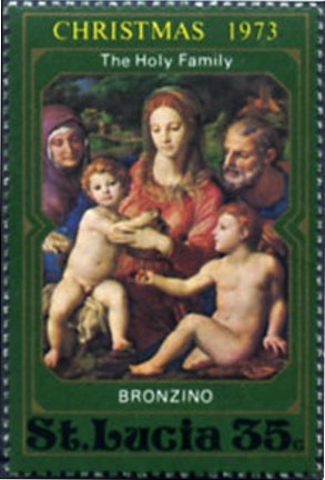 Visibility: public Image owner: none postage 10/17/1973 35c multi issue=Christmas 1973 d="The Holy Family" - Bronzino wmk=mult crown & script CA perf=14 Crops No visible images cropped from this one. Measurements Resolution is unknown. Source Source name: Colnect File URL: http://i.colnect.net/b/2721/618/The-Holy-Family-by-Bronzino.jpg Uploaded October 23, 2015, 2:57 pm by Stan Shebs |
