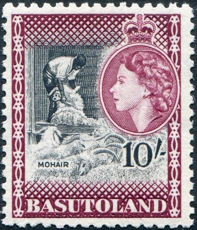 Visibility: public Image owner: none postage 10/18/1954 10sh cl&blk issue=1954 d=Shearing Angora goats & Queen Elizabeth II wmk=mult crown & script CA Crops No visible images cropped from this one. Measurements Resolution is unknown. Source Source name: Colnect File URL: http://i.colnect.net/b/2830/318/Shearing-angora-goats.jpg Uploaded October 24, 2015, 3:15 am by Stan Shebs |