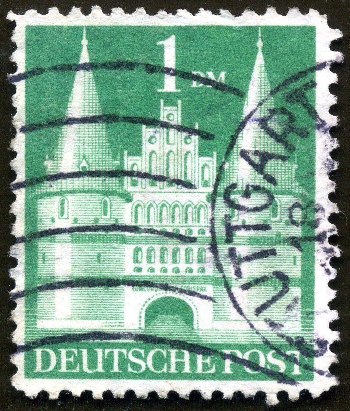 Visibility: public Image owner: none postage 1m emer issue=1948e d=Holstein Gate, Lubeck (1948) wmk=D P mult perf=14 Crops No visible images cropped from this one. Measurements Resolution is unknown. Source Source name: Colnect File URL: http://i.colnect.net/images/b/2828/616/Holstentor-L-uuml-beck.jpg Page URL: https://colnect.com/en/stamps/stamp/561585-Holstentor_L%C3%BCbeck-American_and_British_Zone-Germany_Allied_Occupation_1945-1949 Uploaded October 24, 2015, 4:18 pm by Stan Shebs |