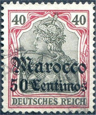 Visibility: public Image owner: none postage 10/1/1905 50c lake&blk issue=1905 d=Germania (Deutsches Reich) ovpt=Marocco fraktur//value oc=blk on=issuer=Germany-1902-40(pf) unwmk perf=14x14.25 Crops No visible images cropped from this one. Measurements Resolution is unknown. Source Source name: Colnect File URL: http://i.colnect.net/b/2496/092/Germania-with-overprint.jpg Uploaded October 25, 2015, 12:09 am by Stan Shebs |