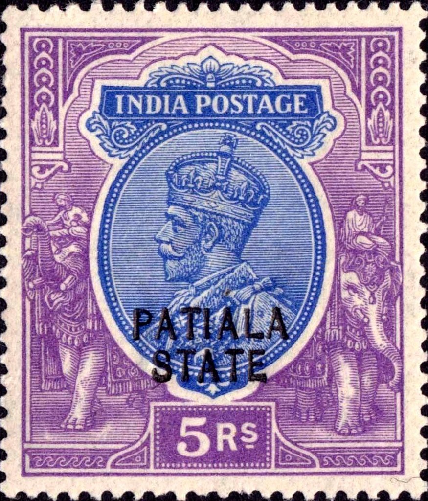 Visibility: public Image owner: none postage 5r vio&ultra d=King George V (1911 India r) ovpt=PATIALA//STATE oc=blk on=issuer=India-1911-5r wmk=star Crops No visible images cropped from this one. Measurements Resolution is unknown. Source Source name: Colnect File URL: http://i.colnect.net/b/2712/879/King-George-V.jpg Uploaded October 28, 2015, 5:26 am by Stan Shebs |