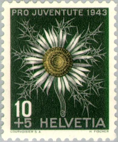 Visibility: public Image owner: none semipostal 12/1/1943 10+5(c) issue=Pro Juventute 1943 d=silver thistle Carlina acaulis unwmk perf=11.75 Crops No visible images cropped from this one. Measurements Resolution is unknown. Source Source name: Colnect File URL: http://i.colnect.net/b/139/781/Silver-Thistle-Carlina-acaulis.jpg Uploaded August 23, 2014, 10:46 pm by Stan Shebs |