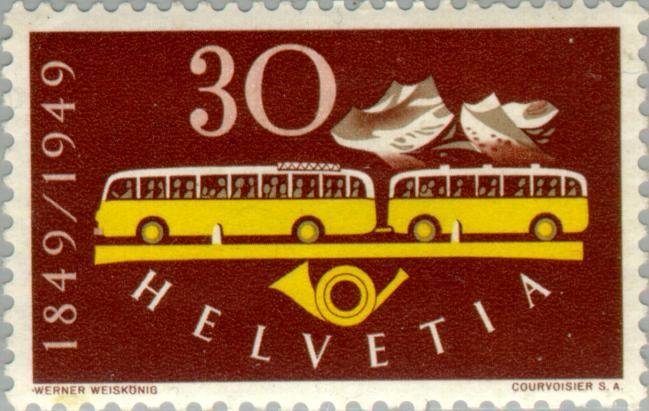 Visibility: public Image owner: none postage 5/16/1949 30(c) multi issue=postal service 100th d=Postomnibus with trailer unwmk perf=11.5 Crops No visible images cropped from this one. Measurements Resolution is unknown. Source Source name: Colnect File URL: http://i.colnect.net/b/139/900/Postomnibus-with-trailer.jpg Uploaded November 4, 2012, 6:15 am by Stan Shebs |