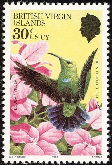 Visibility: public Image owner: none postage 4/5/1982 30c multi dt=hummingbirds and flowers d=Bougainvillea sp. wmk=mult crown & script CA Crops No visible images cropped from this one. Measurements Resolution is unknown. Source Source name: Colnect File URL: http://i.colnect.net/b/2650/326/Green-throated-Carib-Eulampis-holosericeus.jpg Uploaded October 31, 2015, 5:16 am by Stan Shebs |