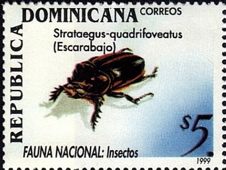 Visibility: public Image owner: none postage 9/10/1999 5p multi dt=insects (1999 Dominican Republic) d=Strataegus quadrifoveatus unwmk perf=13.5x13.25 Crops No visible images cropped from this one. Measurements Resolution is unknown. Source Source name: Colnect File URL: http://i.colnect.net/b/2908/691/Ox-Beetle-Strategus-quadrifoveatus.jpg Uploaded November 3, 2015, 12:08 am by Stan Shebs |