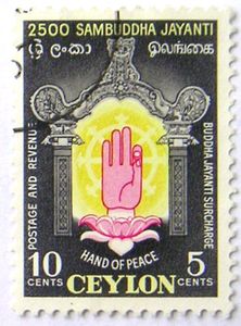 Visibility: public Image owner: none semipostal 5/10/1956 10c+5c issue=Buddha 2500th semi d=hand wmk=mult crown & script CA perf=14 Crops No visible images cropped from this one. Measurements Resolution is unknown. Source Source name: Colnect (old) File URL: http://i.colnect.net/images/f/527/784/Abhaya-mudra.jpg Uploaded November 5, 2012, 6:55 pm by Stan Shebs |