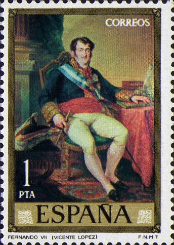 Visibility: public Image owner: none postage 9/29/1973 1p multi issue=Stamp Day 1973 dt=Lopez paintings d=King Ferdinand VII by Lopez unwmk perf=14 Crops No visible images cropped from this one. Measurements Resolution is unknown. Source Source name: Colnect File URL: http://i.colnect.net/b/441/209/-King-Ferdinand-VII-.jpg Uploaded November 6, 2012, 5:32 am by Stan Shebs |